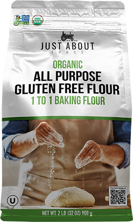 In a large bowl, combine Just About Foods Gluten-Free All-Purpose Flour, xanthan gum, salt, and sugar. In a separate bowl, dissolve the yeast in the warm milk and let it sit f...