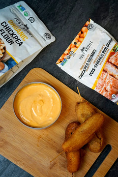 - Roll them in Just About Foods Chickpea Crumbs to coat them evenly.