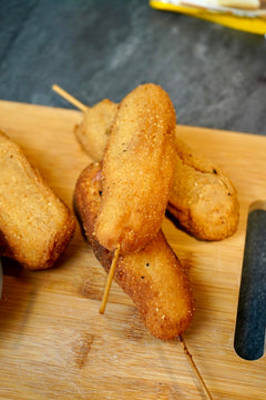 - Fry: Heat oil in a deep pan. Carefully fry the skewers until golden brown and crispy.