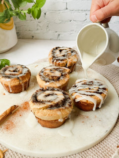 While those are cooling, prepare the icing my mixing both ingredients until smooth and grip all over your cinnamon roll buns.