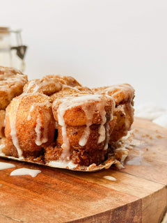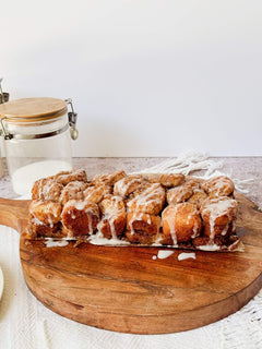 In a small bowl, mix powdered sugar and milk and mix to form a glaze.