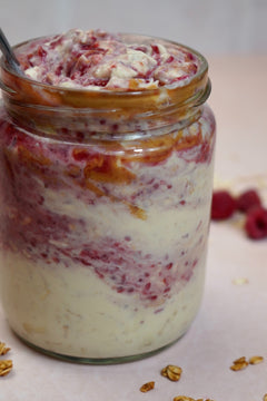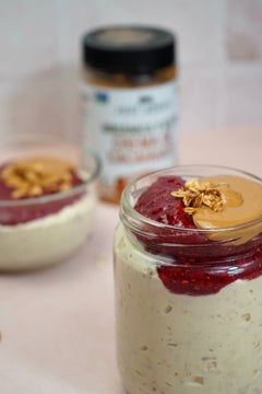 - Assemble: Divide the oat mixture between 3 jars, leaving room at the top. Spoon the cooled chia jam over each, then add a swirl of peanut butter.