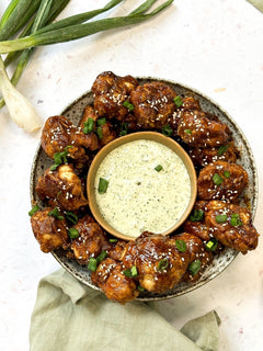 Place the teriyaki sauce in a shallow bowl and toss the baked florets in it, then transfer back to the baking tray and bake for another 5-10 minutes.