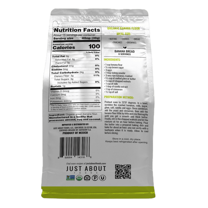 Made from green bananas, this flour delivers a mild flavor and a fiber-rich profile that works beautifully in both sweet and savory recipes. A naturally gluten-free option for baking and cooking.