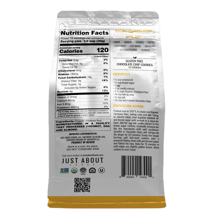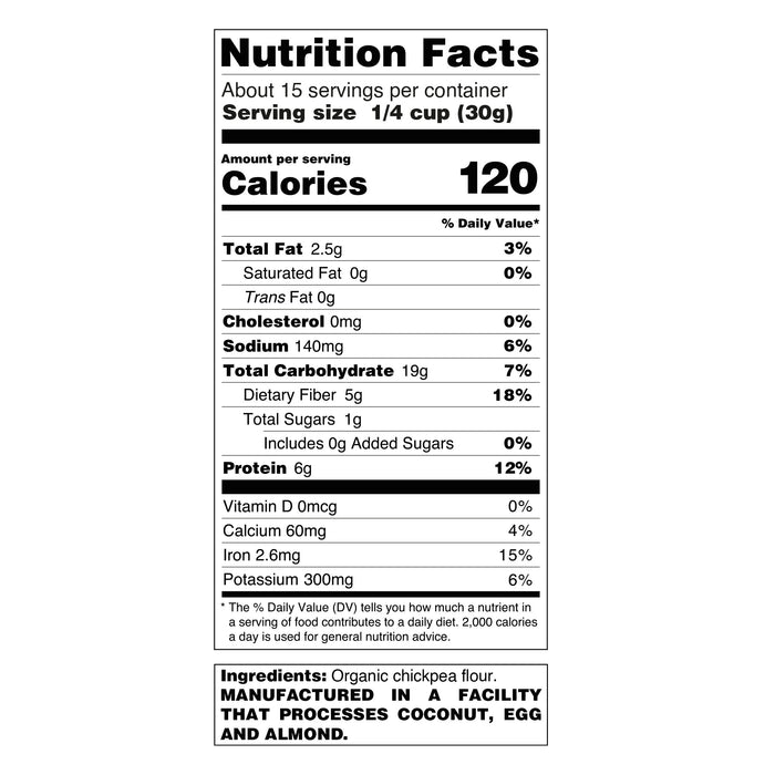 A nutrient-dense flour made from organic chickpeas. Naturally rich in protein and fiber, it's ideal for gluten-free, plant-based, and high-protein cooking and baking.