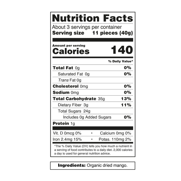 Naturally sweet and chewy slices made from 100% organic mango. A simple, satisfying snack packed with fruit flavor and nutrients, without any added sugars or preservatives.
