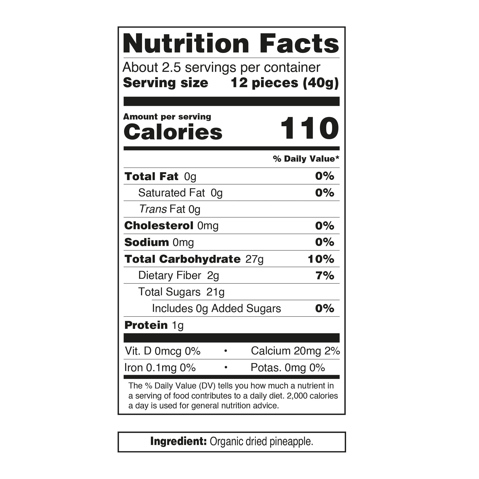 • No fat, sodium, or added sugars