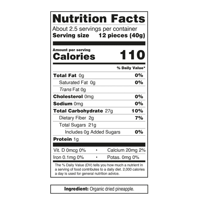Sweet, chewy, and naturally energizing. Our Organic Dried Pineapple is made from 100% real pineapple with no added sugars or preservatives — just pure tropical flavor. A convenient snack that's...